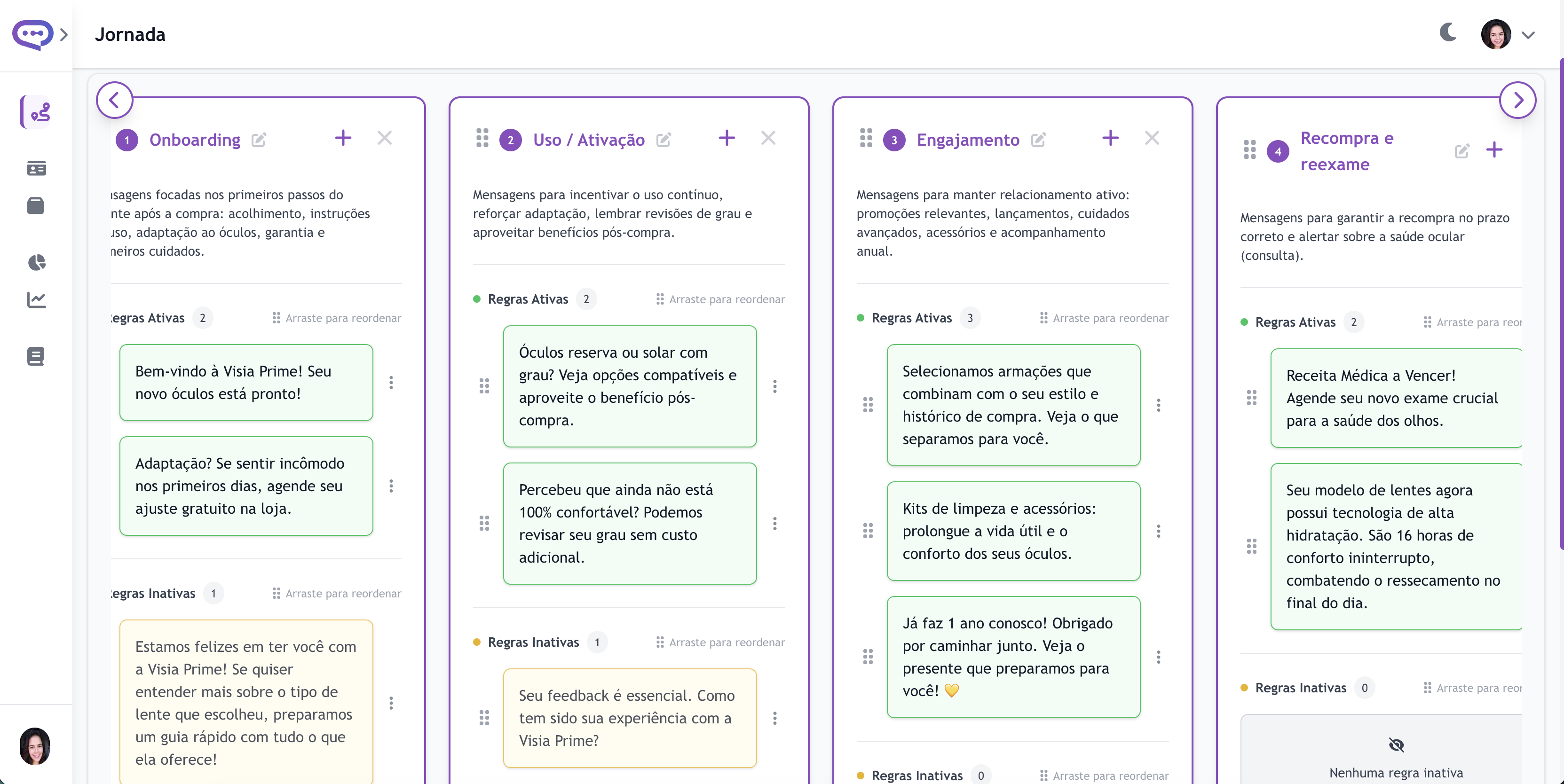 Sua equipe pode criar segmentos inteligentes e acionar jornadas diretamente na régua de comunicação, sem precisar de um time técnico. Comunicação automática, preditiva e focada em fidelizar clientes.